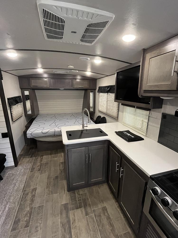 One of the key highlights of this travel trailer is its spacious interior layout. The SS212RB floorplan offers ample living space with a cozy bedroom area, a fully equipped kitchen, and a bathroom with all the essentials. Whether you are traveling solo, as a couple, or with family and friends, there is plenty of room for everyone to relax and unwind after a long day of adventures.