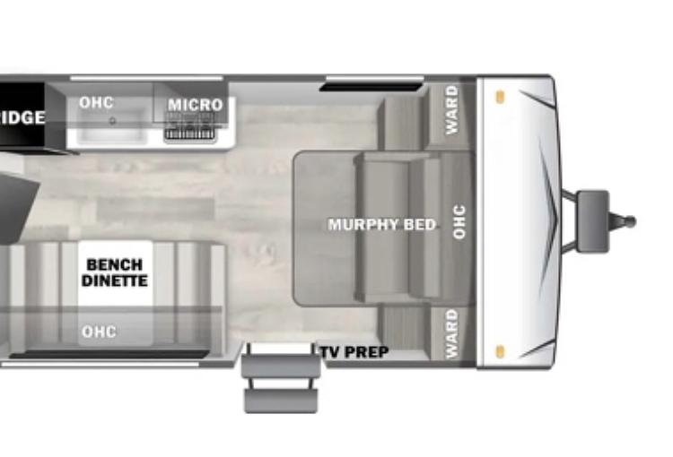 The Forest River EVO 177FQ features a cozy bedroom area with sidebars for electronic devices, coffee or books and fits a queen-sized bed. The dinette also functions as an additional sleep area (1-2 kids; or 1 adult).