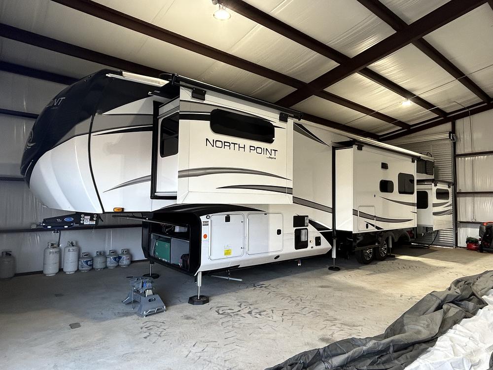 House is built on the ranch, no longer need our mint condition RV. This two bedroom two bath with loft, RV only has 450 miles and has been parked inside a metal building. THIS DEAL WILL NOT LAST LONG. This RV came with North Point luxury package, overlander II solar package, third A/C 15,000 BTU, internal vacuum system, outdoor mini fridge (never used) and grill (never used). Additional add-ons included at the time of purchase include 5.5 Onan LP generator, stackable washer and dryer (never used), awning covers over the slides, rear/back-up camera, stabilizer jack pads, full RV cover and individual wheel covers. The RV includes hook up equipment BW 5th wheel hitch.