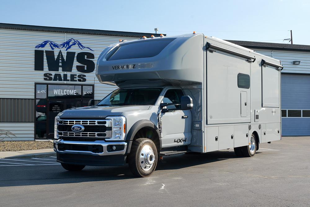 This Veracruz is one of our favorites because of its floor plan. This coach sits at a desirable, 32’ in total length, which is great for National Parks. This setup offers a good amount of living and space that makes it comfortable for up to 6 people to sleep in. We love that you can have a private bathroom and bedroom setup with a queen bed and a privacy door. With opposing seating, this makes it easy to entertain. The kitchen is a really unique layout that our customers are raving about! The short length is a perfect match with the Ford F-550 XLT chassis and the Power Stroke 6.7L Diesel Engine. With a 12,000 lb towing capacity, it’s great for flat towing a car, a trailer, or even your boat!