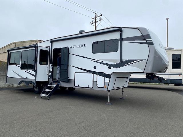 The 2023 Alliance RV Avenue 32RLS is a well‑appointed fifth wheel designed for travelers who want residential comfort in a manageable, tow‑friendly package. Its popular rear‑living‑space layout creates an open, inviting feel, featuring plush seating, large panoramic windows, and an entertainment center ideal for relaxing after a day on the road. The kitchen is thoughtfully designed with solid‑surface countertops, ample storage, and modern appliances, while the private front bedroom offers a comfortable retreat with quality cabinetry and a spacious wardrobe. Built with Alliance RV’s focus on durability, customer‑driven design, and high‑end fit and finish, the 2023 Avenue 32RLS delivers a balanced blend of luxury, practicality, and thoughtful construction for extended stays or weekend getaways