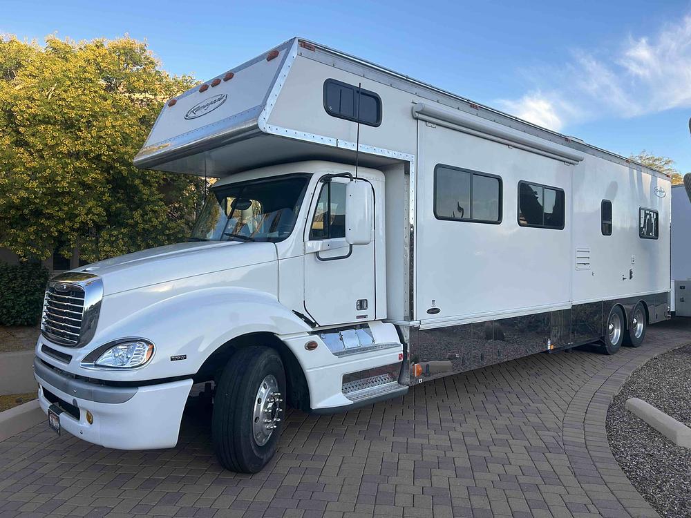 2009 Renegade coach Model 3100XM 41ft long 450HP Mercedes with an AutoShift Transmission, 149,000 miles. Mid-Entry Motorhome, 2 Slides, Sleeps 8, Outdoor entertainment center, outdoor cooler, Awning, Large Mid-Bath, Bunk over Cab, Queen size bed in Master, 12,500kw Onan Diesel Generator, 40,000lb hitch, Automatic leveling system and 3 solar panels.
