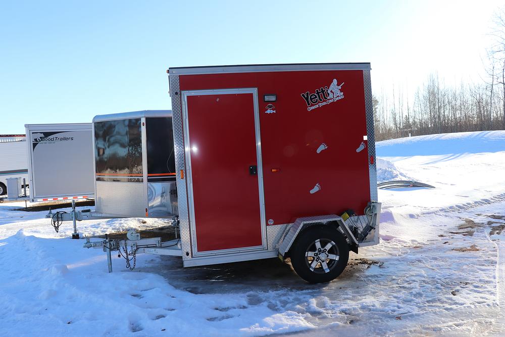 Come see this pre-owned Yetti 6’ x 8’ fish house that’s built exactly the way you want a premium shack to be. This house has a cedar tongue-and-groove interior that not only looks great but holds heat extremely well. It’s equipped with a direct-vent furnace, so it stays warm and safe even on the coldest days, and the carpeted floor adds comfort for long hours on the ice.