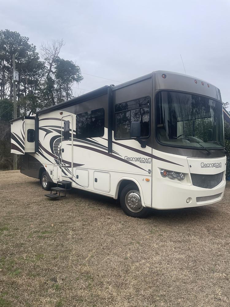 The Forest River Georgetown 310DS is a top-of-the-line Class A motorhome that offers luxury and style for all your travels. This 2015 model is in great condition with only 26,300 miles on the odometer, ensuring many more adventures to come. The Georgetown is known for its spacious interior, offering plenty of room for relaxation and entertaining. The layout includes a comfortable living area, a fully equipped kitchen, a bathroom with shower, and bedroom with walk around king bed and separate TV. The RV has seatbelts for 6 and sleeping for 7. Tons of storage both inside and outside the coach. With 4000 lbs of carrying capacity you can bring everything with you. 5000 lb hitch to pull your car or add bike rack. 150 hours on generator. Everything works! Never had a leak. Stored under awning. Non-smokers. New tires all the way around in 2024. Needs nothing!