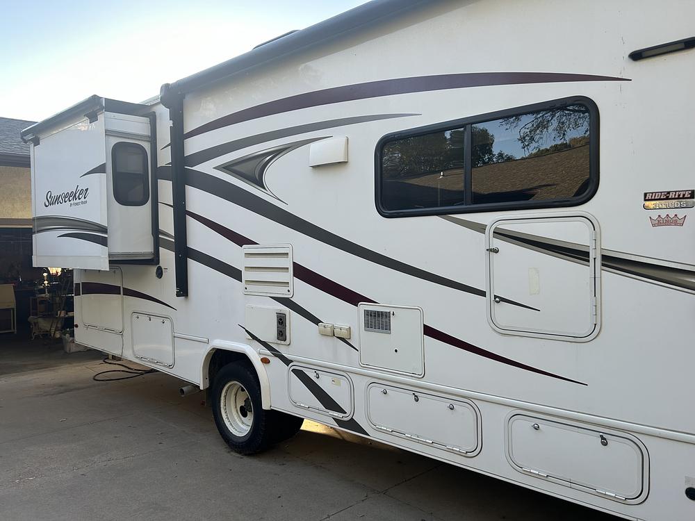 The sleeping area features a cozy queen-size bed, allowing you to rest comfortably after a long day of exploring. This RV can sleep up to eight.The Sunseeker also includes plenty of storage space for all your belongings.