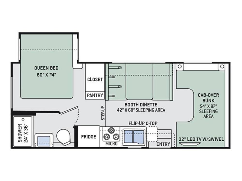 Solo-Friendly, Family-CapableWalk-around queen bed (no crawling over anyone at 3am), cab-over bunk with privacy curtain and its own TV. Sleeps 4 VERY comfortably. Perfect for couples, small families, or solo travelers who want space to breathe.