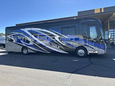 Interior features alabaster finishings, navigation, camera screen for exterior cameras, 6-way driver and passenger seats, electric stair cover, auto cockpit shades, fireplace, sofa sleeper, recliner, 2 televisions, dirt devil central vacuum system and pull-out dining with 2 chairs. Kitchen with luxury residential 4 door refrigerator with icemaker, flat top 2 burner stove, convection microwave and pull-out pantry. Bath stuns with dual entry, double sinks, glass shower enclosure with skylight, ample storage and macerator toilet. Bedroom features a king bed with built in nightstands, reading lights, large closet, stackable washer and dryer, large number of cupboards and drawers, ceiling fan, television and hidden safe. Serious Inquiries Only, No Codes, etc