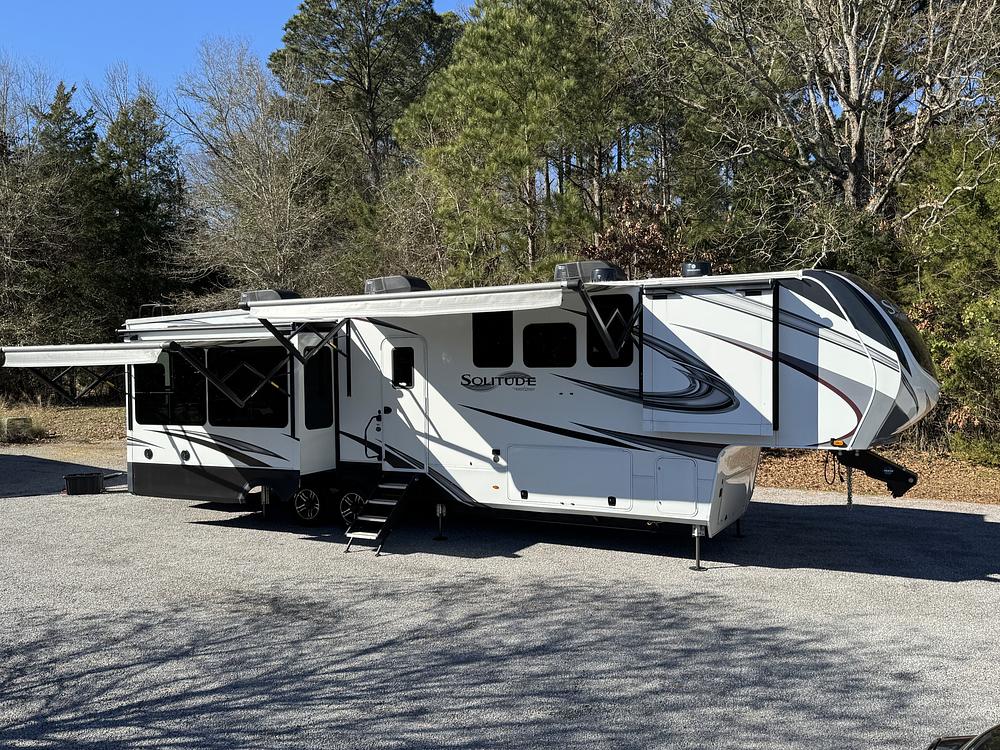 This Solitude has been cared for and is in great condition. Its ready for travel, seasonal stays, or full-time RV living.