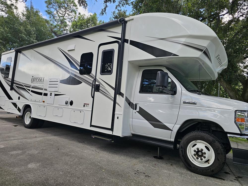 Located in Central Florida, this meticulously maintained 2021 Entegra Odyssey 30Z is offered for sale by a non-smoker owner. With a clean title in hand and no accident history, this motorhome is prepared for immediate travel. It presents a rare "Farm House" interior option and excellent mechanical upgrades for enhanced safety and comfort.