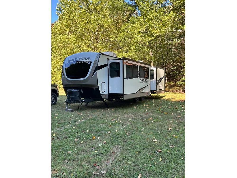 Comes with everything you need to start camping. Surge protector, power cord, heated water hose, tire blocks and leveling blocks, two propane bottles, power stabilizers, Curt TruTrack Weight Distribution System w/ Sway Control - Trunnion - 10,000 Ibs GTW, 1,000 lbs TW.