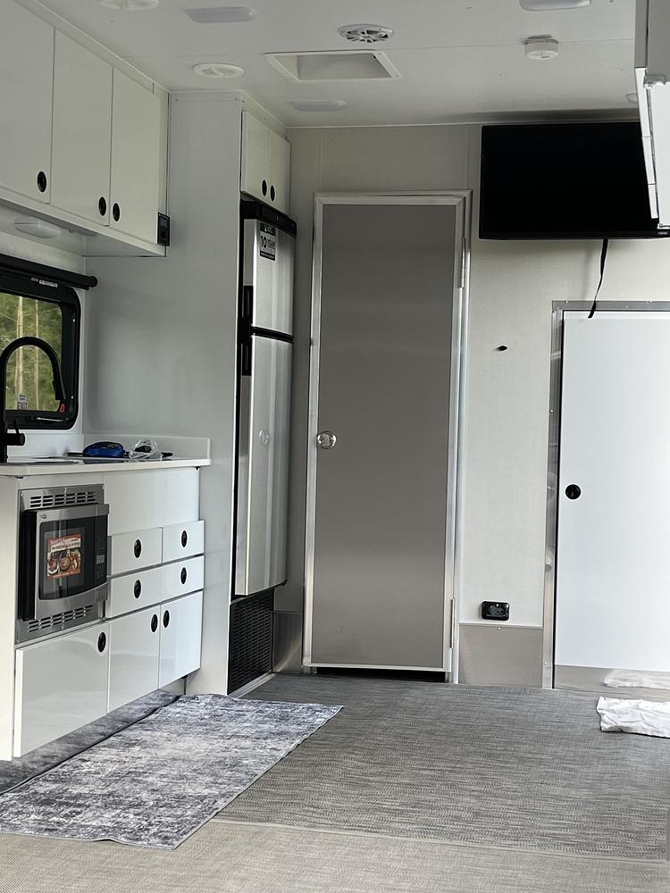 Norcold 10 Fridge/Freezer (Elec & 12V) *Highpoint Convection/Microwave & 2-burner cooktop (Never used) *Firefly System (Control panel and phone app for the whole trailer) *Vizio Smart TV & MB Quart Mobile/Marine AM/FM/Bluetooth Audio (Int/Ext speakers) *Cell Signal Booster & Undercounter adjustable/programmable LED lights.