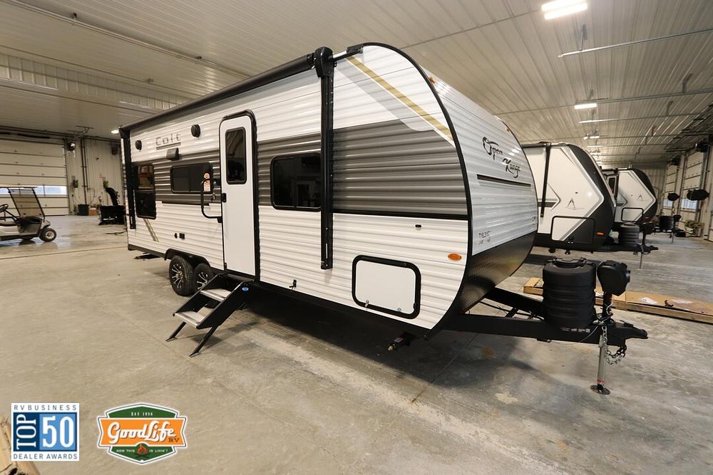This brand new 2026 Open Range Colt 21QB and many other great Highland Ridge layouts are available at Good Life RV in Des Moines, IA.