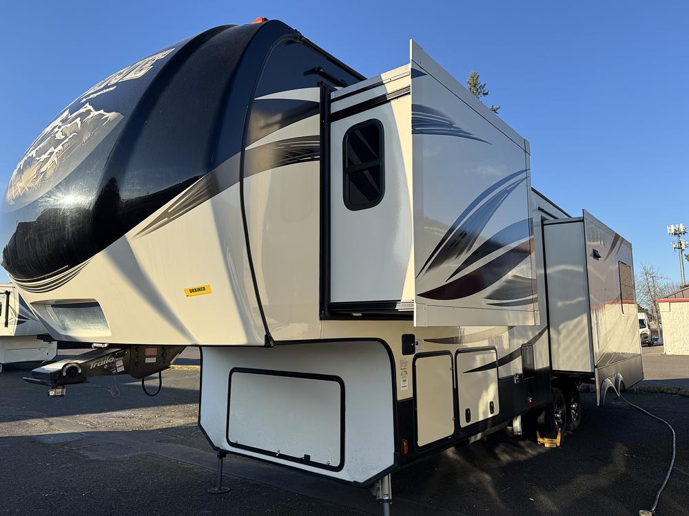 34 FT with King Bed, Residential Refrigerator, Dishwasher, Inverter, Four Season Package and it Comes with 2 Year Service Contract when purchased at the advertised price. Large Windows, Gorgeous wood Cabinets. Beautiful Rear Living 5th Wheel w/ 3 Slides. Sleeps 4.