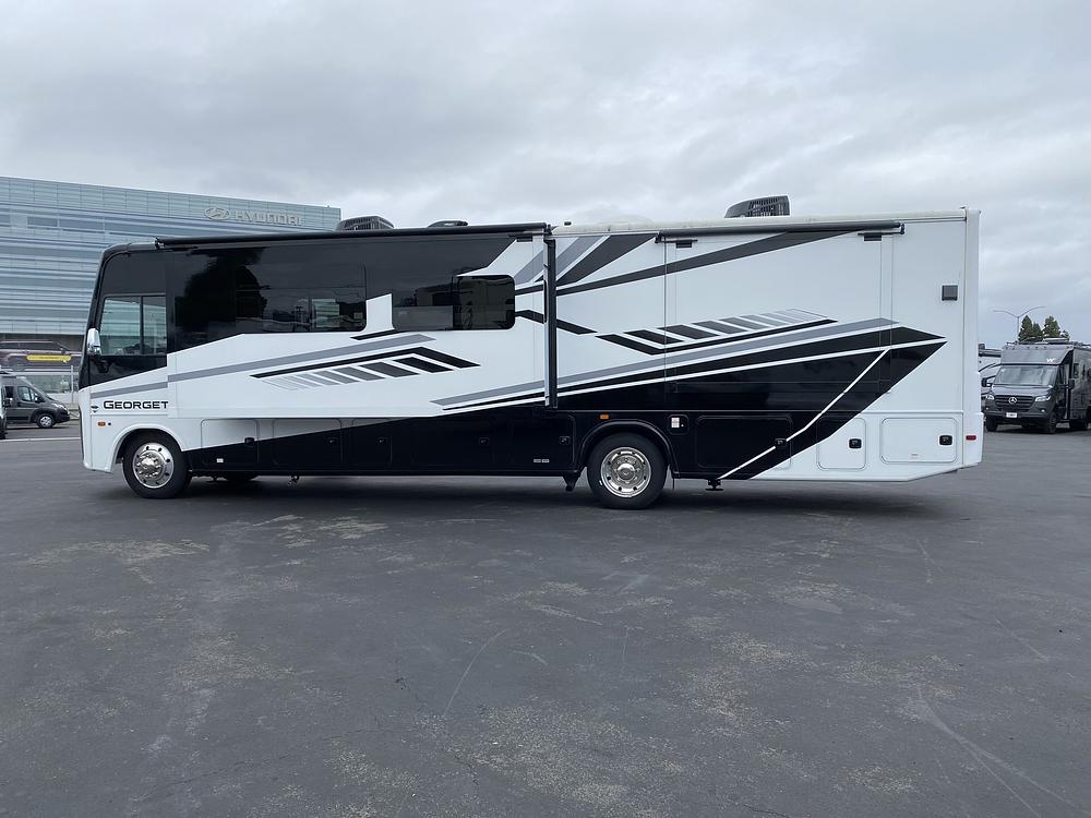 On the outside, the Georgetown 5 Series is sleek and stylish, with an attractive exterior design and plenty of storage compartments for all your gear. The powerful engine and smooth ride make driving this motorhome a breeze, whether you're cruising down the highway or navigating through tight city streets.