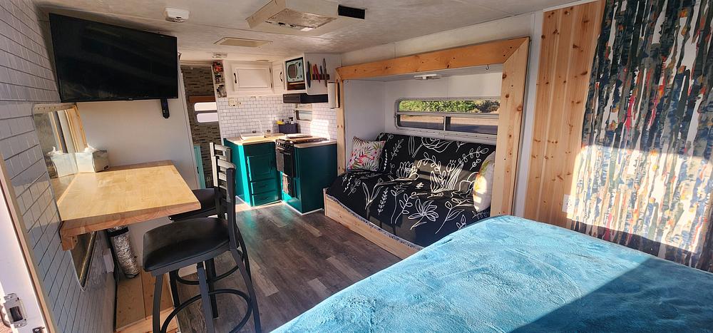 -Additional storage cabinet added next to refrigerator with 4 drawers and internal slide out drawers in upper cabinet.