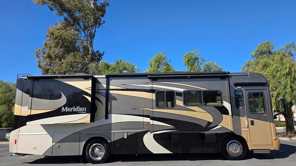 2011 Itasca Meridian model 34Y freightliner short diesel pusher 39k miles backup, camera, automatic, power, leveling jack system, air ride, suspension generator outdoor storage compartments, power, awning, full body paint beautiful luxurious floor plan Leather interior, power sofa, sleeper bed, full kitchen, stainless steel appliances, full bathroom large master bedroom suite lots of closet storage space absolutely gorgeous condition no pets no smoking, beautiful inside and out too many options to list loaded for more info call