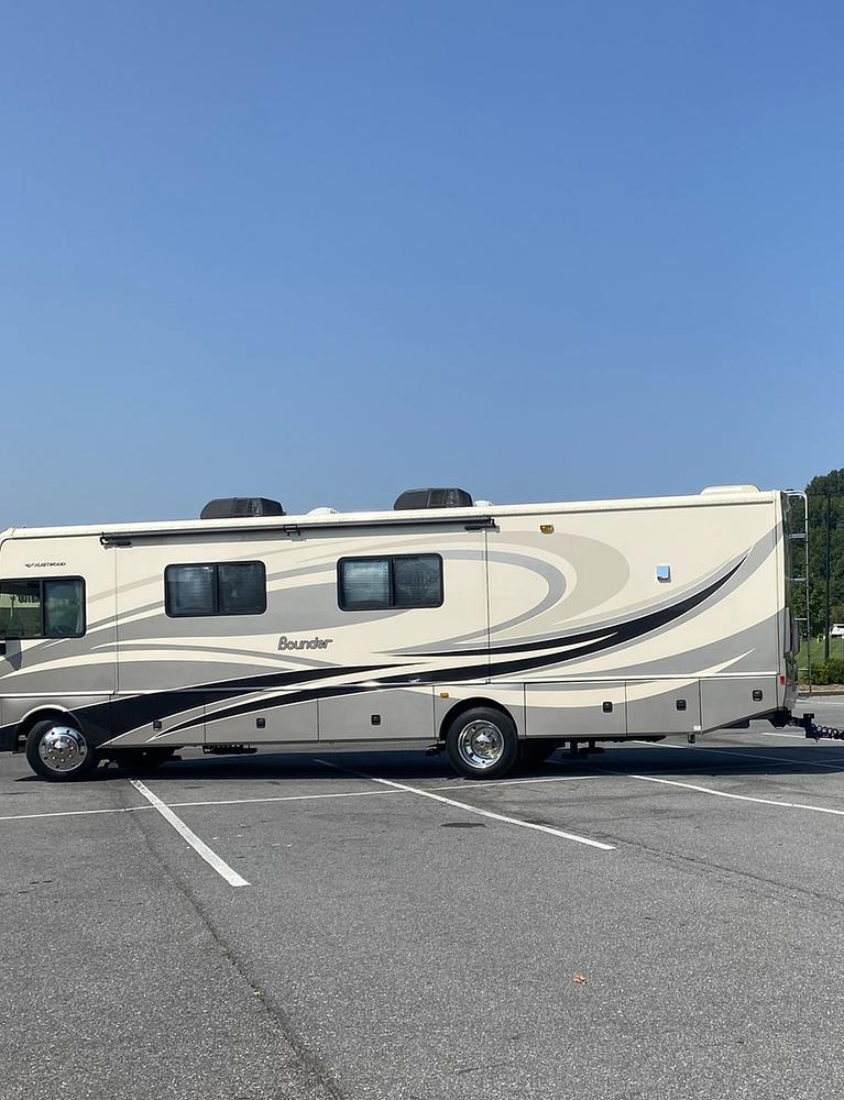 Class A Fleetwood Bounder Model 35K with only 25K Miles. Full Body Paint, Ford 6.8L Triton V10 362HP Engine, 2 Slide Outs, 7 Car Play Touchscreen, Wind Sensor Electric Awning, Sleeps 4, 2 AC Units, Auto Leveling System, 1 1/2 Bath, Queen master bed w/ Serta Comfort mattress, Booth Dinette w/ 2 sets of cushions, 4 total TVs(LR/BR Smart), No Pets-Non Smoking Unit.