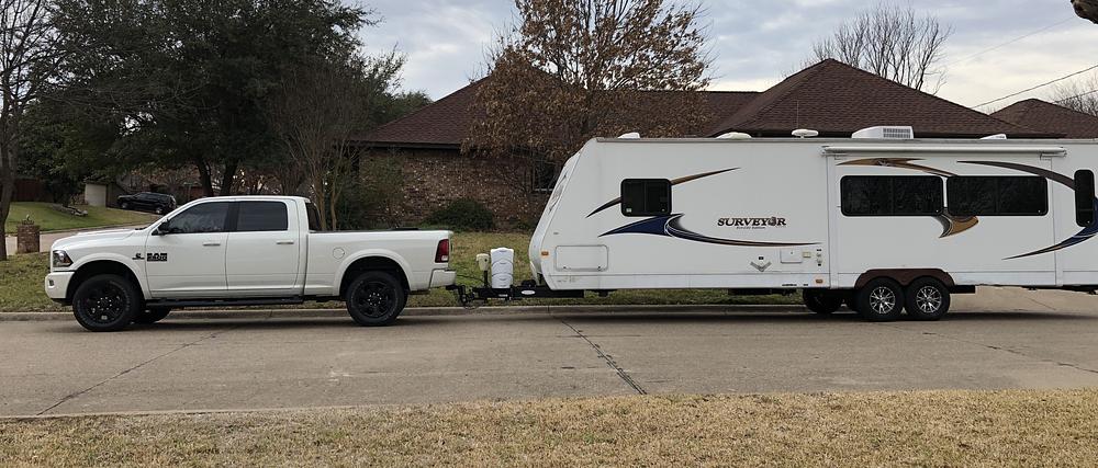 The Surveyor SV-302 features a large single slide, extended couch with a freestanding eating/working table that lowers to a coffee table. A separate large foot stool stows under the couch. The fold out bed has a new air bed with an electric air pump. Two recliners and space on extra long couch easily sits 6. Dimmable Hidden LED lighting around slide. The kitchen includes gas / 12v refrigerator, microwave, three burner stove and LED lighting in most cabinets. 2 built in Heavy slide out wire shelves in the food pantry. A complete set of cooking pots, pans, knives, silverware and food storage containers are included.