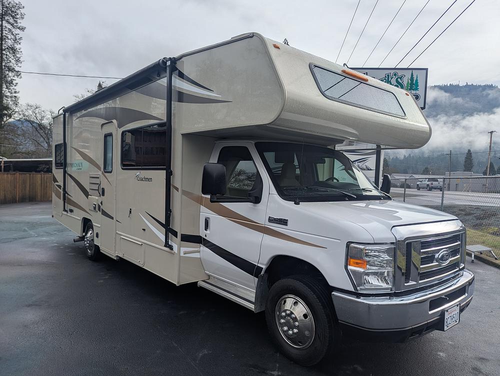 This is a single slide Class C motorhome that is small enough to be easy to drive around, but big enough for the whole family! It has a slide in the living quarters with a sofa, and dinette, plus an over the cab bed that all can be used as beds. In the rear bedroom, there is a queen size bed, with some closet space. The shower is in the bedroom area with a separate area for the toilet and vanity. The unit comes with air, awning, microwave, and generator. This rig is has a Ford V10 engine and 60,235 miles. Come see it at Jim Clark's Consignment Country 1630 Rogue River Hwy. Grants Pass, OR 541-476-0818 or 800-675-0818 Closed Sundays Dealer#2885 Our website @ www.clarksconsignment.com