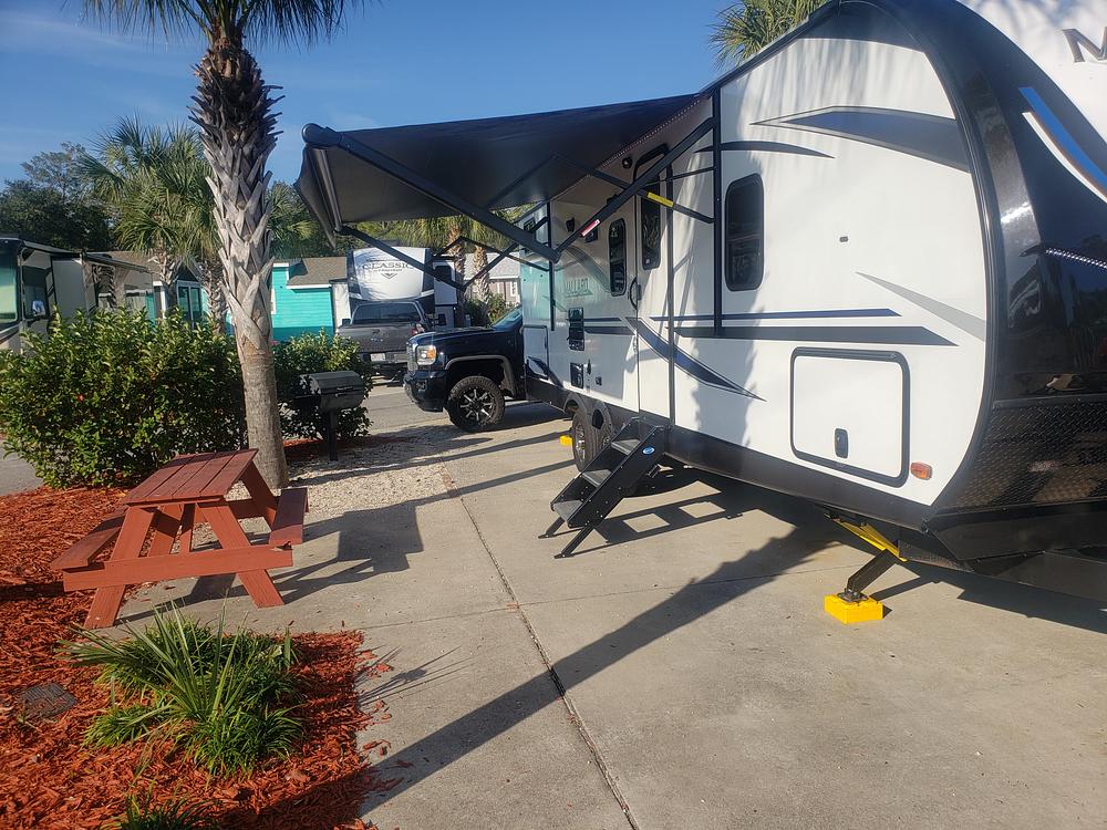 When it's time to turn in for the night, the spacious bedroom offers a comfortable retreat with a plush queen-size bed and ample storage for all your belongings. The bathroom is well-appointed with a shower, sink, and toilet, so you can freshen up and prepare for another day of adventure.