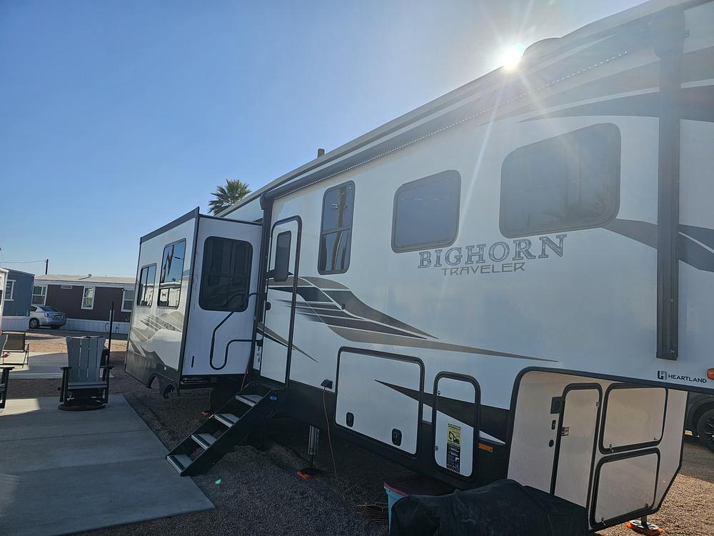 36' 5th wheel camper. Well taken care of. King Size bed, full size closer and dresser. Washer/dryer hook ups. Come with lots of extras. Heated water hose and sewer line for the colder states. Water softener, new tires. Most dishes will stay as well as bed linens.