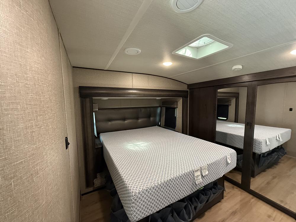 Selling to move to a Class A. This 2022 Grand Design Reflection 337RLS is an easy fifth wheel trailer to set up, take down and be on the road with as its designed for comfort and convenience. Stainless appliances, residential frig, and slide outs that make the living space palatial. Or at least quite roomy. Changes made from factory . Bathroom vanity changed and secured to wall. Bathroom shower door removed to allow a shower curtain. Bathroom closet shelving removed.
