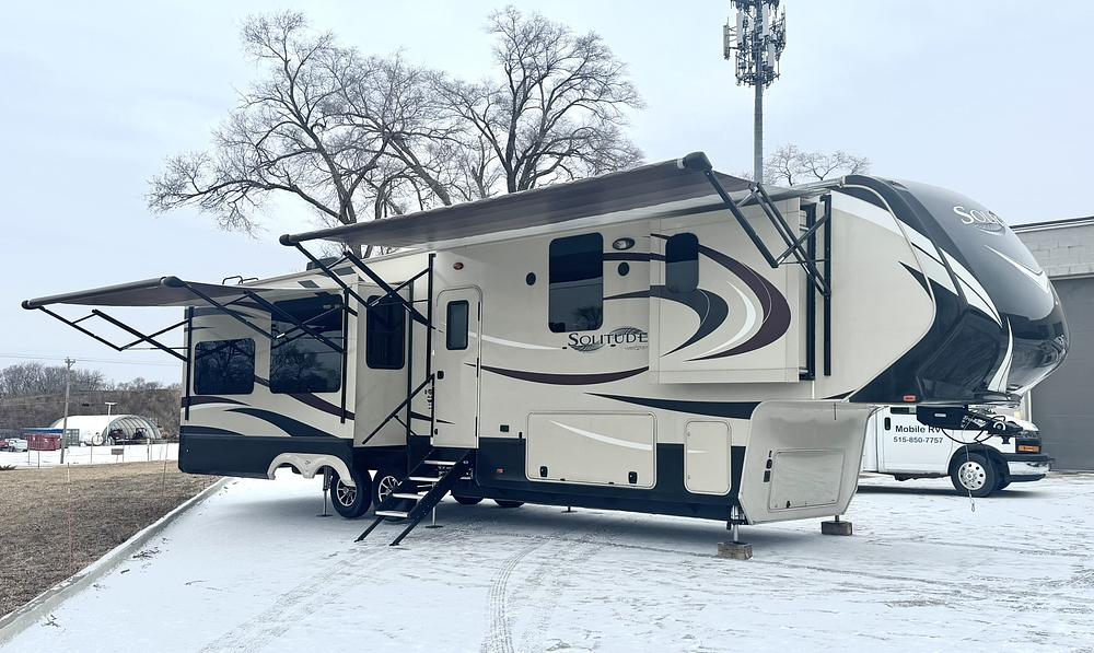 This 2017 Grand Design Solitude 384GK fifth wheel is a fantastic opportunity for anyone looking for a high-quality, luxury camper but at a lower price. It is a single owner, always smoke-free & stored indoors, and meticulously maintained, making it a very clean and reliable unit.