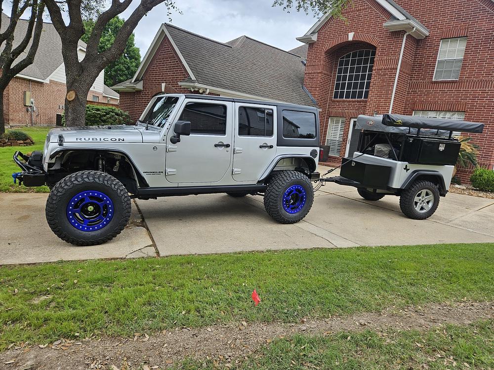 Off road camping trailer. 31 in tires, 20gal. Water with pump, set up with fridge slide and 12V electric. 270 awning. Battery, and 5 led lights. 3 cargo boxes. Rear Jeep bumper with hitch that can hold bikes, dirt bike or a spare tire. Has annex not pictured which turns it into 2 story tent great for kids (has floor). Wheels and tires pictured are 37s it now has on 31s and Silver Rubicon wheels. Timberen axle less Independent suspension. Rides great.Tepui Autana 3 person tent with annex. In good condition. Off road 360 hitch. Aluminum floor. Has trailer brakes but not currently hooked up because none of my Jeeps have a 7 way connector and it doesn't need it.
