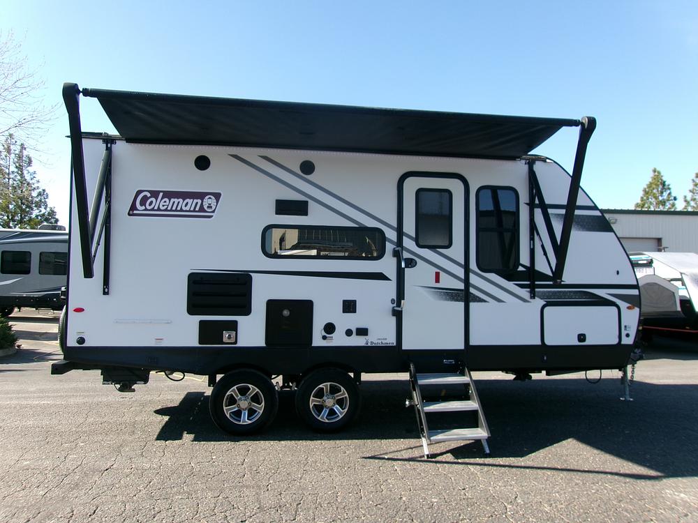 THIS 2023 DUTCHMEN COLEMAN 1805RB SHORT TRAVEL TRAILER WITH A SLIDE!! THE COLEMAN IS EQUIPPED WITH GREAT MODERN COLORS AND SUPER SPACIOUS. IT IS EQUIPPED WITH A QUEEN BED, LEATHER SOFA SLEEPER WITH RECLINERS, FIREPLACE, TV, GREAT STORAGE IN THE BATHROOM, OUTDOOR SHOWER, ELECTRIC LEVELING JACKS, BACK UP CAMERA READY, AND MUCH MORE!!