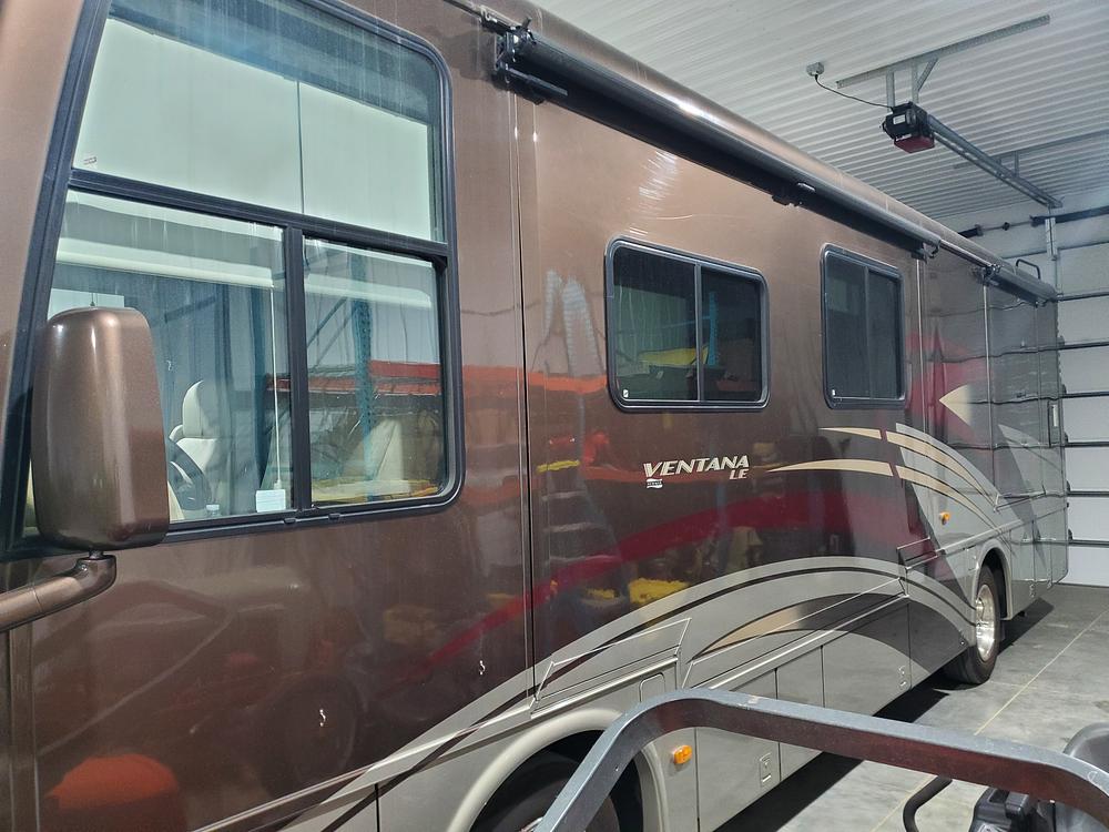 Great 34 Foot Easy to Drive RV 340 HP Cummins Diesel Set up for boondocking with 3 solar panels on the roof. New sleeper couch cloth. Tires dated 2020