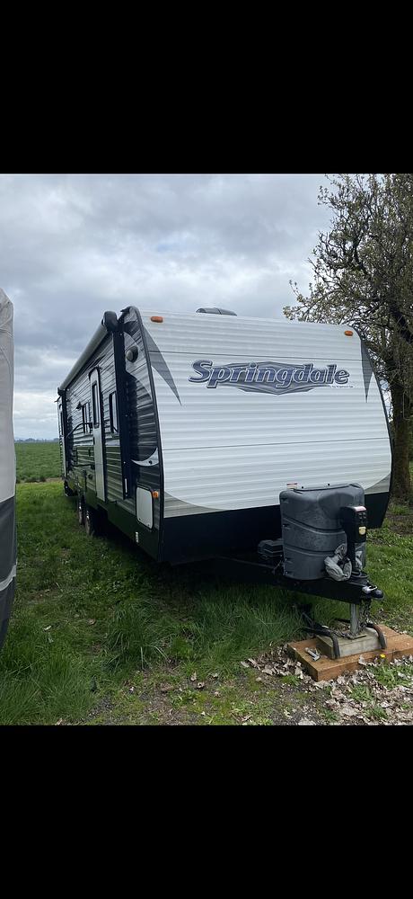 The Keystone Springdale 282BHSSR is a popular travel trailer model known for its spacious layout and modern amenities. Built in 2015, this travel trailer is perfect for families or groups looking to enjoy the great outdoors in comfort and style. The Springdale 282BHSSR offers a cozy living space with a well-equipped kitchen, comfortable sleeping areas, and a convenient bathroom. The layout includes a master bedroom with a queen-sized bed, as well as a bunkhouse with multiple beds for additional sleeping space. The living area features a sofa and dinette that can be converted into extra sleeping areas if needed. The kitchen is equipped with a stove, refrigerator, microwave, and plenty of storage space for all your cooking essentials. Additionally, the bathroom includes a shower, toilet, and sink for added convenience. With its lightweight design and easy towing capabilities, the Keystone Springdale 282BHSSR is perfect for road trips and weekend getaways. Whether you're exploring national parks or camping by the beach, this travel trailer has everything you need to make your adventures memorable. Experience the freedom of the open road with the Keystone Springdale 282BHSSR.