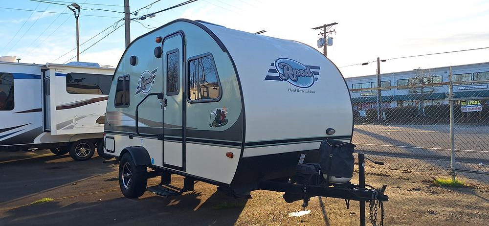 LIGHT WEIGHT!! 2016 R-POD 171 trailer is a 19-foot, single-axle travel trailer designed with a distinctive, aerodynamic teardrop shape. Ideal for couples or small families, it features a rear queen bed, front dinette, and a wet bath, with a dry weight under 2,500 lbs, making it towable by many SUVs and light trucks.