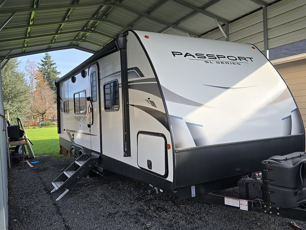 2023 Keystone Passport SL Series West, 27 feet, Solarflex 200 pkg, DFE Lithium batteries, electric jacks, easy tow hitch, electric brake hook-up, upgraded exterior steps, and pass-through storage. Upgraded Queen size bed in separate sleep area with convertible dinette. Full bathroom with shower, range, microwave, refrigerator, pantry, and plenty of storage. Theater seats, LED HDTV, Bluetooth sound system with indoor/outdoor speakers and outdoor TV hook-up. Climate control A/C and heating. Power awning with LED lighting. Also included is a 28 gallon Rhino tote tank and a new DISH playmate satellite TV system. Used only 3 times, $35,000.Contact slmartin@wbcable.net for more information, and to set up time to view in Lyons, Oregon.
