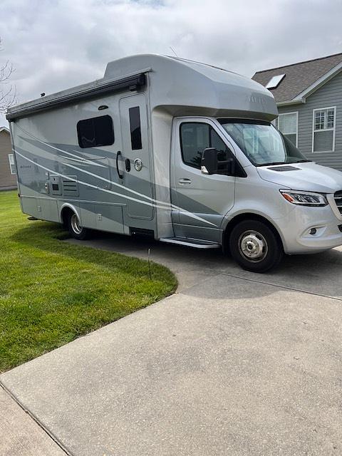 2022 Tiffin Wayfarer RW in like new condition with Big Foot hydraulic leveling system with snap pads, diesel generator and 16 foot power retractable awning. it comes with advanced safety features such as blind spot monitoring, side view and rear view lane assist and collision mitigation and back up camera.is equipped with cutting edge technology with touchscreen Spyder controls and advanced entertainment system with blue tooth. Charging tray for smart phones, MBUX multimedia system with 10.25 touchscreen, Apple CarPlay and black leather heated and power adjustable seats. Comfortable sleeping quarters featuring a luxurious queen size Murphy bed/sofa combo, queen size Tri-fold sleep sofa and over the cab bunk area or can be storage area. Well appointed bathroom with roomy shower, porcelain toilet and lighted mirror. Two 32TVs one inside cabin and one outside. OnePower retractable slide out,Truma Aqua Go tankless hot water and heated holding tanks.