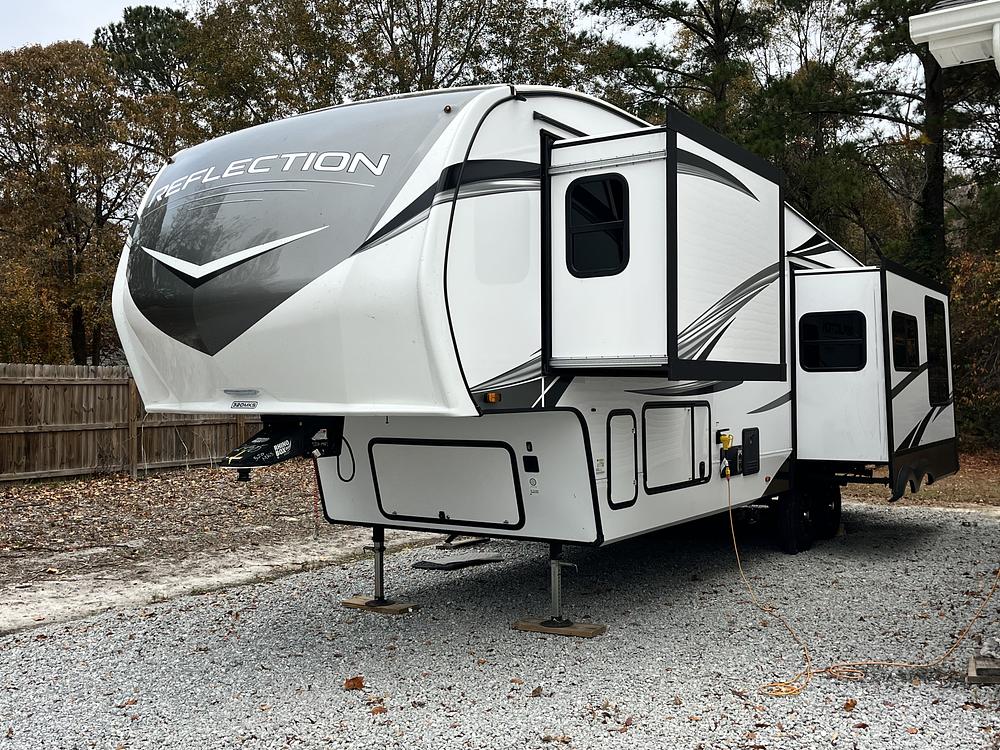 Outside, the Reflection boasts a sleek and modern exterior design with plenty of storage space for all your gear. The large awning provides shade on sunny days, while the outdoor kitchen allows you to cook and entertain al fresco. With its sturdy construction and reliable performance, the Grand Design Reflection is sure to provide years of enjoyment for you and your family.
