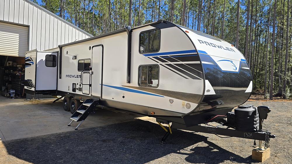 We are the original owners, and the camper comes with a clean title in hand. Our original plan was to live in it while building a home, but we ended up building a temporary living space inside our pole barn insteadso this Prowler has seen extremely light use. It still smells like new.