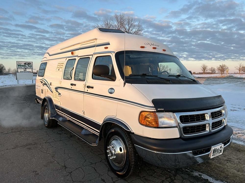 This is a 1999, class B, Xplorer 230 XLW Van. It is on a Dodge 3500 chassis. It has the 5.9 liter motor with 70,145 miles. Located in Milaca Minnesota. It is approximately 21 feet bumper to bumper. Lots of exterior storage. Tires are Michelin’s, and in excellent condition, with no sidewall cracking. Inside is in great condition. This has driver’s side mid bathroom with toilet/ shower combination. Front seats rotate, with center post and table attachment. Has 2 single parallel beds in back, with convertible sliding dinette, by day or center, Island nightstand by night that can be removed, and converted into a king size bed sleep area. Appliances include a microwave, 2 burner cooktop, 3-way refrigerator, furnace, water heater, that is hooked up to the heater core system of the vehicle, so that it heats water heater, and maintains while driving. Has engine, AC and house A/C. There is also an exterior shower. All appliances work as they should. This is ready for your next RV adventure.