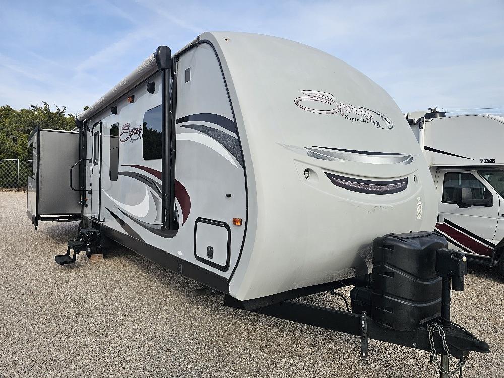 - Well Equipped with 2 ACs, Dual Refrigerator & Dual Water Heater, Free Standing Dinette, Large Shower, Microwave, Stove W/ Oven, Furnace, TV, Stereo, Nice Awning W/ LEDs, 2-30lb LP tanks, Power Tongue Jack, Weight Distribution Hitch W/ Built in Sway Control, Lots of Storage and Much More!