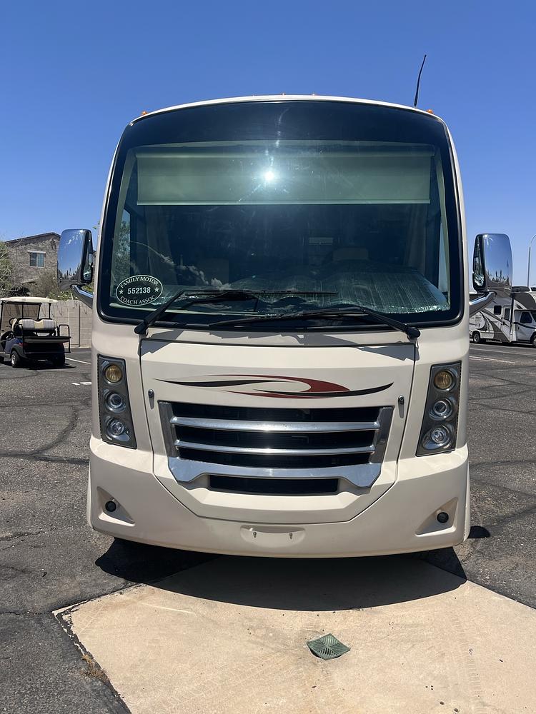 This motorhome is great for maneuverability and easy parking. It has a rear slide out for the queen size walk around bed. The bottom 1/3 folds up when the slide is in for travel (see Picture). The bed has a 1- inch foam topper and is very comfortable. There is additional sleeping space in a drop - down single bunk over the cab and the couch expands to 36 X 72- inch bed. It has a convection microwave that was replaced in 2023. The Cummins Onan generator was serviced last summer and works great. The two coach batteries as well as the engine battery were replaced last year. It has two solar panels on the roof which keep the coach batteries charged as long as there is sun, but they will not run the A/C or the microwave. This is a very comfortable and fun RV to own. I have all of the maintenance records.
