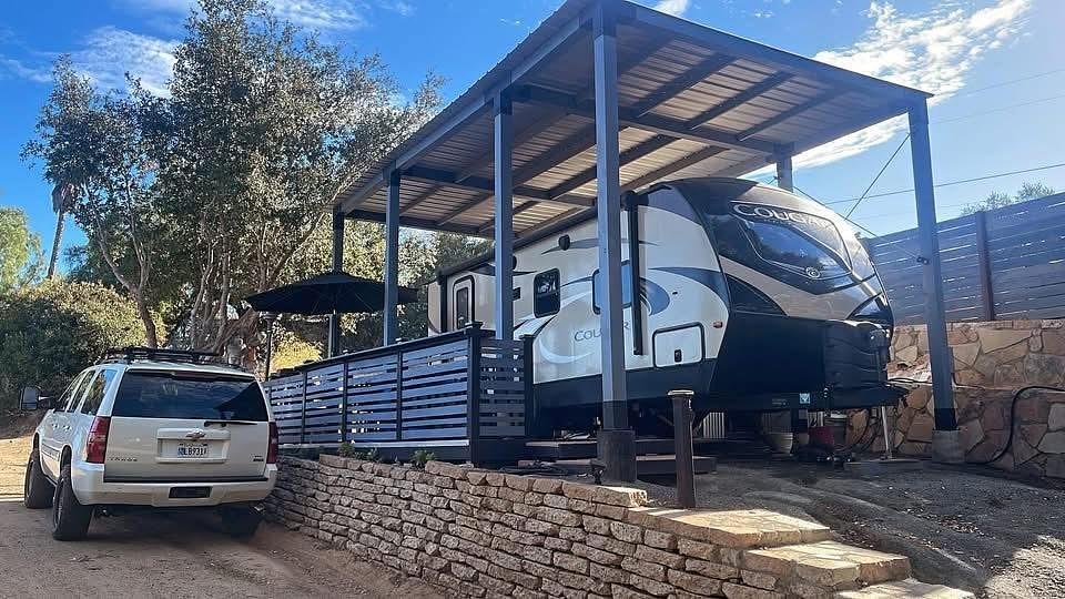 Im leaving the country! This unique man cave Cougar comes with everything to easily live full time , dishes, pots n pans, etc. New water heater. Id say it requires a 2500 truck but my 1500 Tahoe did ok. It has sat in place for 5 years. Rare front window model (east coast model). First year with inControl computer system works with iPhone from bed!!! Added Wave3 propane wall heater near bed. Sips propane keeps trailer warm all night. Highly modified interior with freshly painted satin black cabinets, shiplap rustic wood walls. 1.5 exotic wood custom counters, big kitchen sink. Cheap King bed converted to thick Ortho Queen. Useless bedside cabinets modified and removed. Taller man sized bathroom sink cabinet with brand new black sink. Unique pee urinal under bathroom sink! The water pump seems broken but uses city water. Two classic 1960s $2000 leather swivel chairs, $1000 compost toilet, located in Lake Hodges. 2023 tag Youll want to get it registered and buy some insurance , 4 tires look new, pink slip in hand, .(Del Dios, near Lake Hodges)