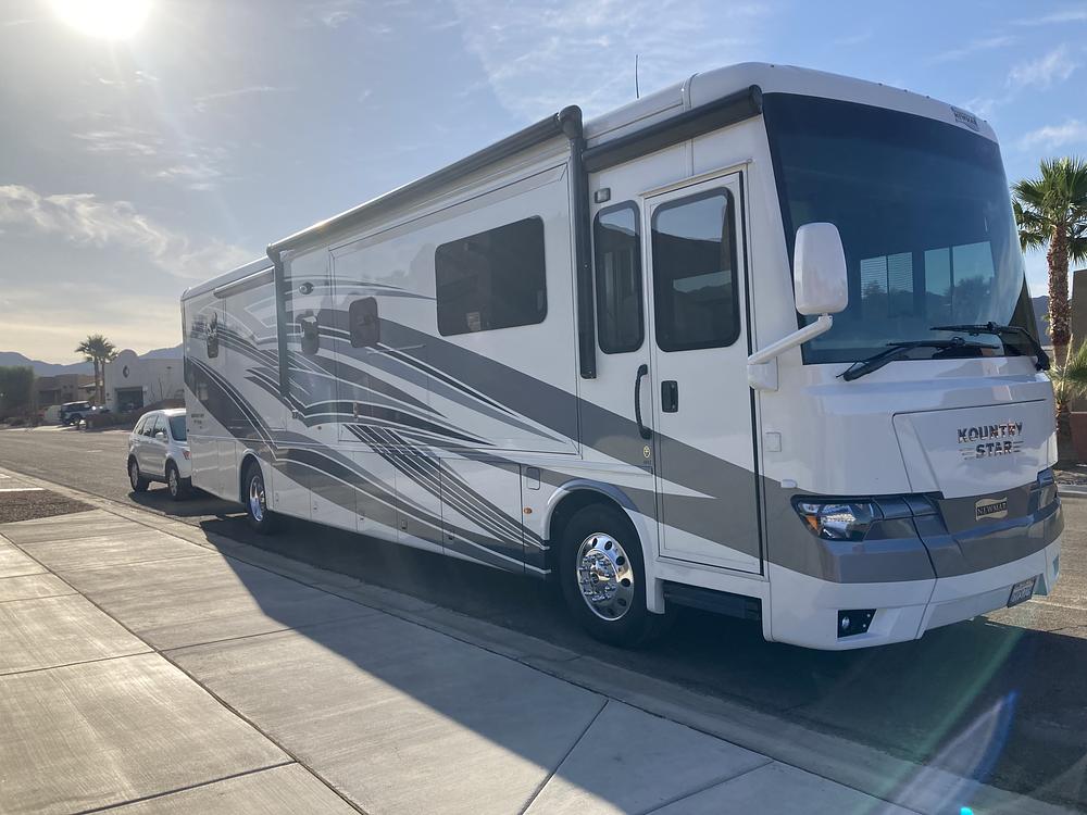 Driving the KOUNTRY STAR is a breeze thanks to its powerful engine and smooth handling. With amenities like a backup camera, navigation system, and power steering, you'll feel confident behind the wheel. And with features like automatic leveling jacks, a generator, and multiple slide-outs, setting up camp is quick and easy.