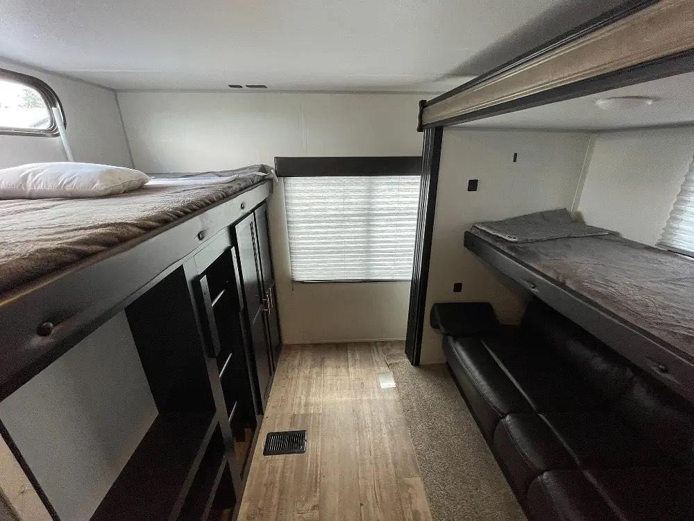 The 2022 Forest River Cherokee Grey Wolf 294BH is a versatile and spacious travel trailer perfect for families and adventurers alike. With a sleek design and modern features, this travel trailer offers comfort and convenience on the road. The 294BH model is known for its efficient use of space, providing ample room for sleeping, lounging, and dining. The interior is beautifully designed with high-quality materials and finishes, creating a cozy and inviting atmosphere. Equipped with all the necessary amenities, including a kitchen, bathroom, and sleeping quarters, this travel trailer has everything you need for a memorable getaway. Whether you're exploring the great outdoors or traveling cross-country, the Cherokee Grey Wolf 294BH offers reliability and style. Hit the road in style and comfort with the 2022 Forest River Cherokee Grey Wolf 294BH travel trailer.