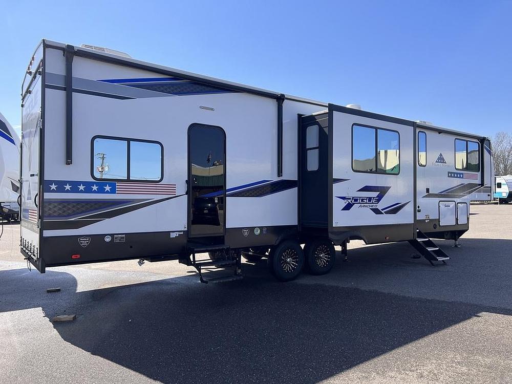 The 2024 Forest River Vengeance Rogue Armored 351-G2 is a cutting-edge toy hauler designed for adventurers and outdoor enthusiasts. With a sleek and rugged exterior, this RV is built to withstand tough terrains and varying weather conditions, making it the perfect companion for off-road excursions. The Vengeance Rogue Armored boasts top-of-the-line features that cater to both comfort and convenience, ensuring a luxurious camping experience for its occupants.