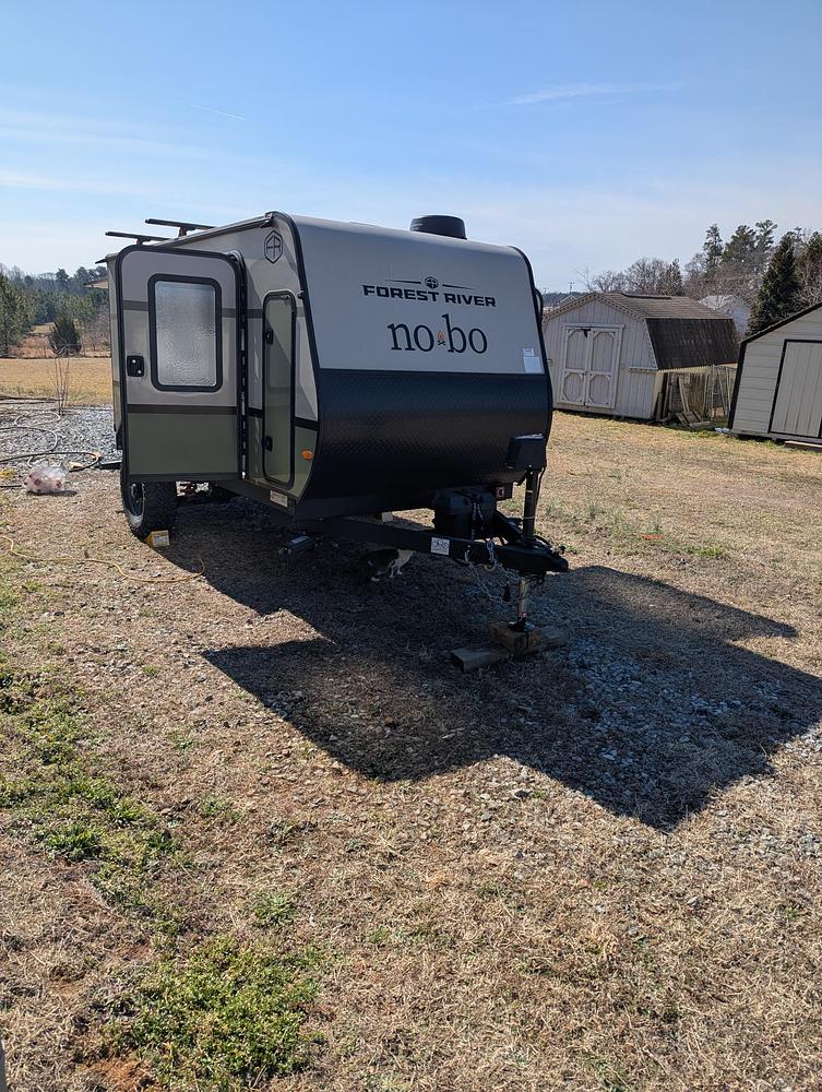 2025 NoBo 10.7 by Forest River, one-owner, excellent condition, interior pillows/bedding/sofa never used, roof top tent and 270 degree awning never used [removed and never used buyer to re-install if wanted. Has AC, heat, fireplace, connex 12v TV with boosted rooftop antenna. Has rear/outside kitchen with propane cooktop, 12v fridge, sink with water pump and drain. Has rhino roof rack with attachments for carrying a kayak. Has 12v battery with cutoff. Has 4 corner stabilizer jacks. Electric tongue jack. Tires in great condition. Has Beast Mode independent suspension. Garaged.