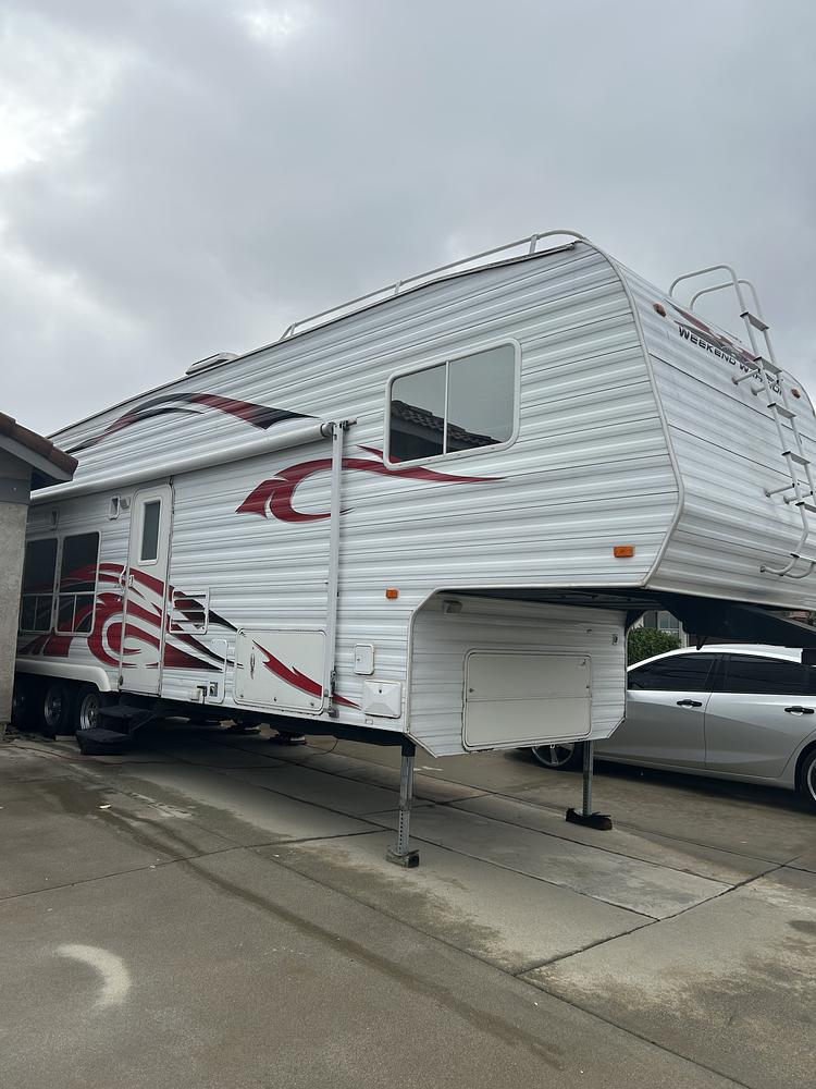 Weekend Warrior: 5.5 Onan Marquee generator, 40 gallon fuel tank, gas station, 150 gallons freshwater, 50 gallon gray water tank, 50 gallon black water, microwave, gas stove with oven, gas/electric refrigerator, ducted air conditioning, two queen beds, sofa bed, cocktail table with chairs, extra chairs included, stereo with speakers forward and aft, large awning, abundant storage inside and outside, gas water heater and space heater, 6 good year tires with only 500 miles on them. I'm original owner, this is an outstanding trailer, well kept, everything works well. TEXT Me at , $14,999 or make an offer!