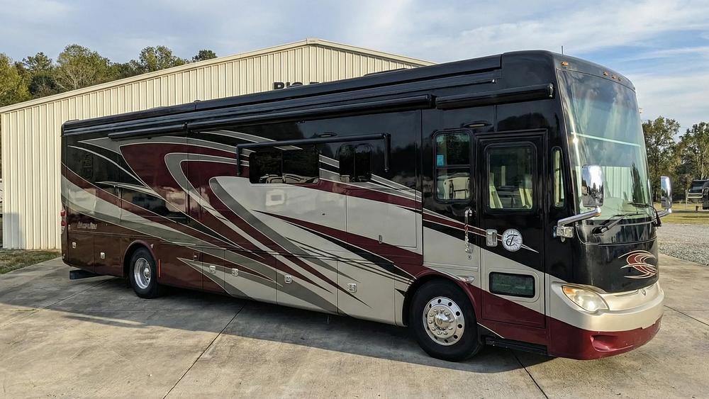 Inside, you’ll find the upscale design and premium build quality that Tiffin is famous for—perfect for full-time RV living or luxury road trips.