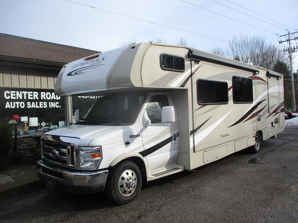 2016 COACHMAN LEPRECHAUN 319 MB WITH 2 SLIDEOUTS.ONLY 37000 MILESVERY VERY CLEAN CAMPER,.QG400 ONAN GENERATOR.LIVING ROOM HAS A DOUBLE COUCH WITH RECLINERS,FIREPLACE,LARGE TV,STEREO,KITCHEN AREA HAS A OVERSIZED LARGE U SHAPED DINNETTE,STOVE WITH OVEN,MICROWAVE,FRIDGE AND FREEZER,DOUBLE SINK,LOTS OF STORAGE AND COUNTER SPACE,HAS A SPLIT BATS WITH SEPERATE SHOWER,BATHROOM HAS A SINK WITH VANITY MIRROR,SHOWERR HAS A SKYLIHGHT.REAR BEDROOM HAS A QUEEN SZ BED AND LOTS OF STAORGE AREAS.OUTSIDE HAS A FRIDGE,LARGE TV AND STEREO,LEVELING JACKS,FULL AWNING AND LOTS OF UNDER CAMPER STORAGE,EXTRA CLEAN CAMPER IN AND OUT,DONT MISS IT..CALL 440-327-7689..THANK YOU