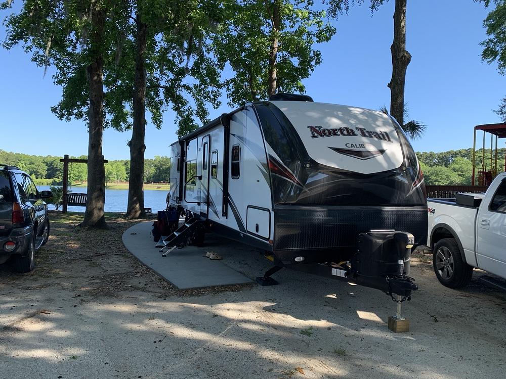 Wonderful camper with a large rear kitchen. Has all the added upgrades of the Caliber package including porcelain toilet, solid hard surface counter tops, double undermount sink, central vacuum, and electric stabilizer jacks front and back, and two air conditioners. This has been a great camper that we have used about three to four times a year. No issues, no leaks.