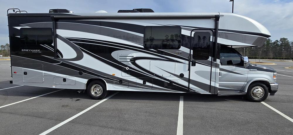 The exterior of the JAYCO GREYHAWK PRESTIGE is sleek and modern, with a distinctive design that sets it apart from other Class C motorhomes on the market. The exterior features include a power awning, exterior entertainment center, and ample storage compartments for all of your gear.