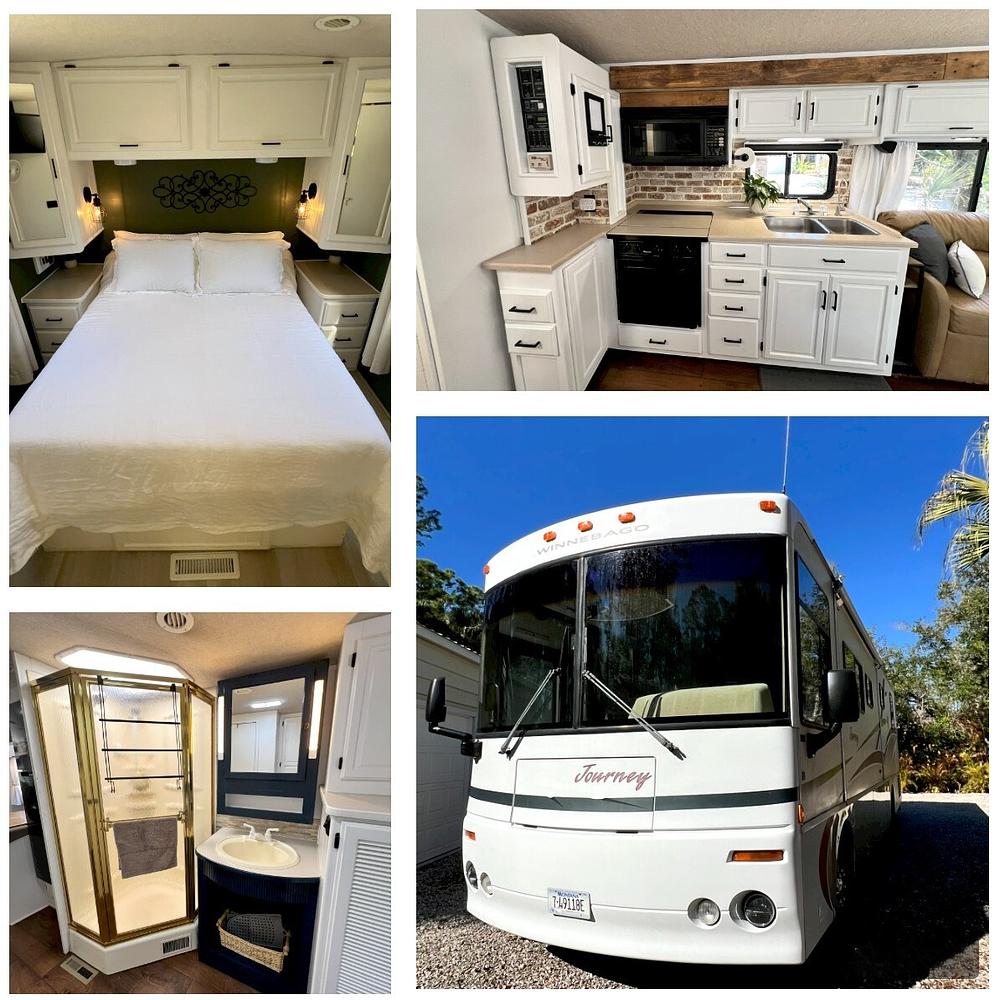 This 2000 Winnebago Journey 36L has a 275hp 5.9l Cummins Engine On a Freightliner Chassis, Spring/Air Suspension, 30A electrical system, 1 Slide-out, Onan Generator, 2 Ducted Air Conditioners, Levelers, Double Door Gas/110v, electric refrigerator/freezer, Main Awning, Washer/Dryer Connections & vented Washer/Dryer unit, Backup Camera, 2 Visio TVs, Outside Shower, Convection Microwave, 3 Burner Range, Oven.
